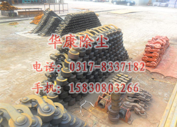 陽極振打錘是使極板、極線產(chǎn)生振動(dòng)以清理沉積在它們表面的粉塵的系統(tǒng)。陽極振打錘的軸扣采用的是將U型卡和與軸連接的軸卡兩個(gè)零件構(gòu)成,再將兩個(gè)零件焊接在一起,需要注意的是焊接而成的軸扣要_所要求的相對位置,使得組裝后的振打錘正確的打到要求位置。一般是一排極板安裝一個(gè)振打錘,同一電場各排的振打錘安在一根傳動(dòng)軸上,并依次錯(cuò)開一個(gè)角度,使各排板極交替地受到振打。振打強(qiáng)度和振打頻率,可用適當(dāng)?shù)碾娍匮b置進(jìn)行調(diào)節(jié)。